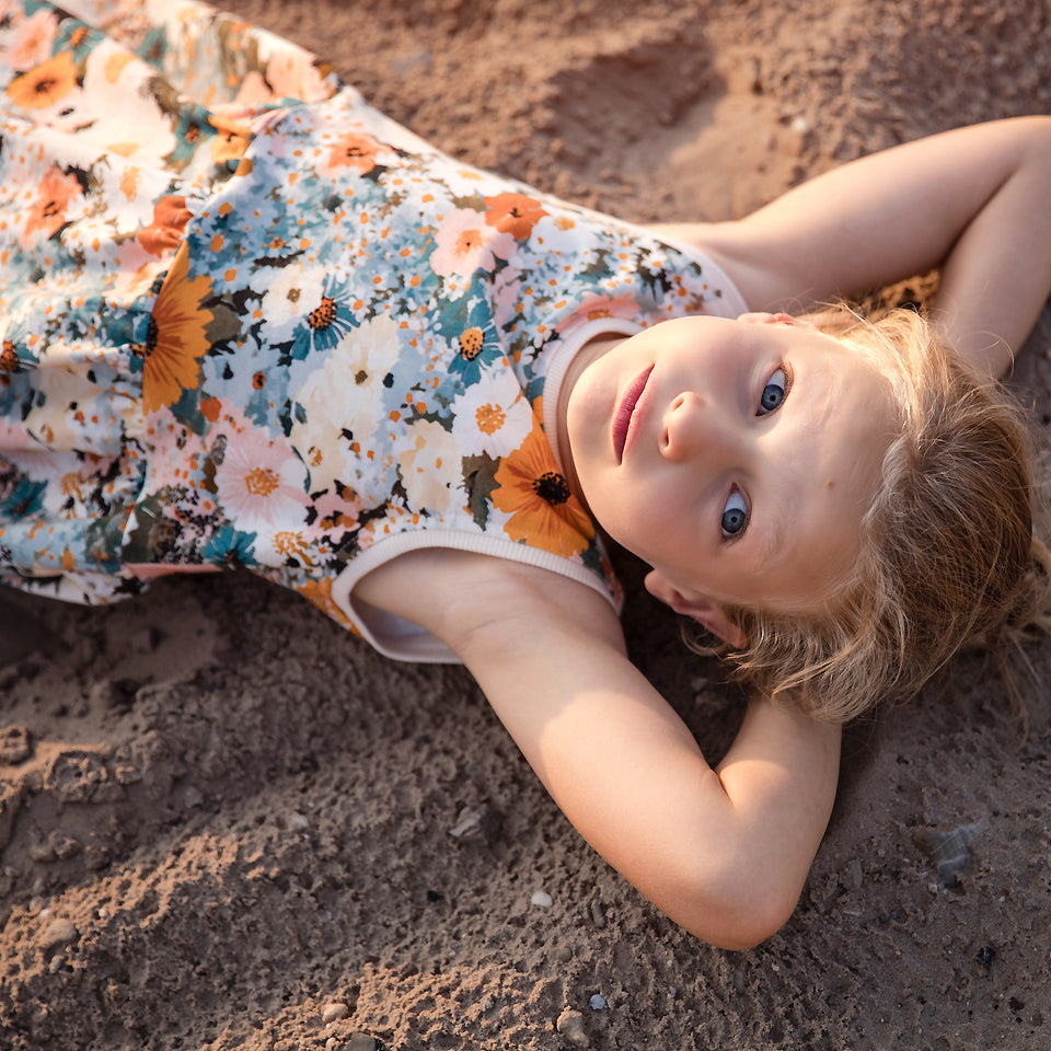 See You At Six Flower Painting French Terry. Price is per 25cm, so to buy one metre enter the quantity 4. Fabric will be cut in one piece. Note that cut fabric is non-returnable.